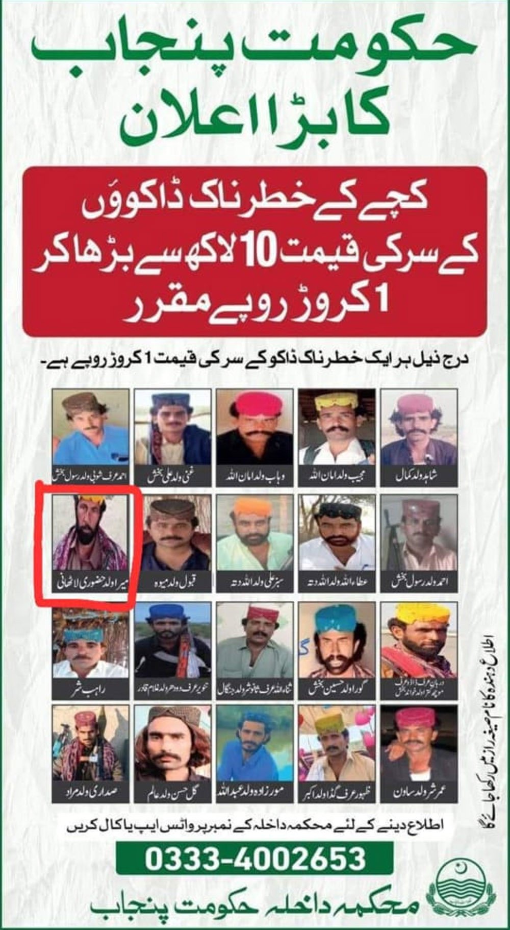 رحیم یار خان: ایک کروڑ سر کی قیمت والے ڈاکو میرا لٹھانی نے ساتھیوں سمیت ہتھیار ڈال دیئے
